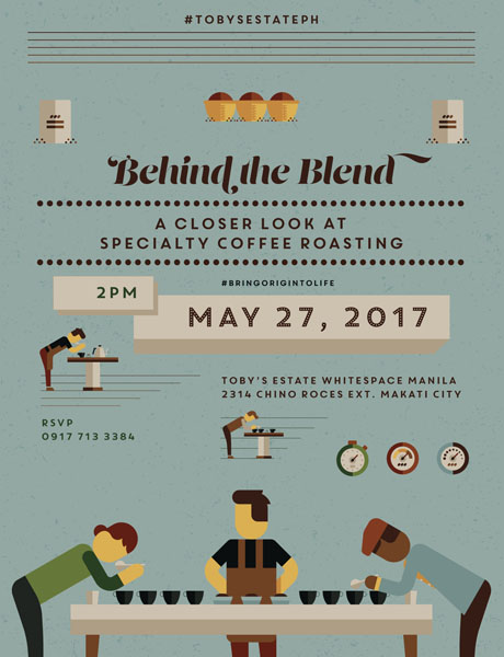 Do join us for an afternoon of specialty coffee appreciation, roasting and tasting this May 27, 2017, 2pm. What's more fun? You'll be the first to try our newest blend, Salcedo, plus get to know exciting updates for our upcoming events and promotions this June!
