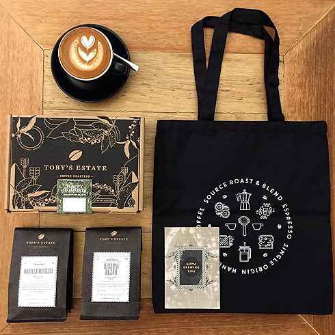 That's our new Holiday Gift Set. Two bags of freshly roasted coffee, a gift box, a home brewing booklet and a snazzy new tote. Prices start at P1,050.